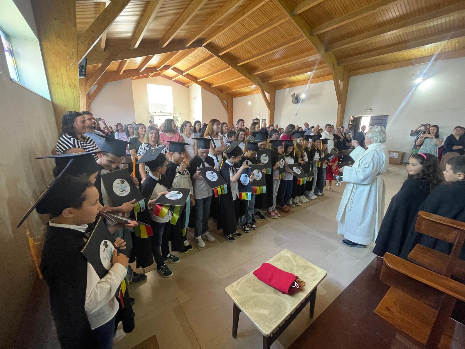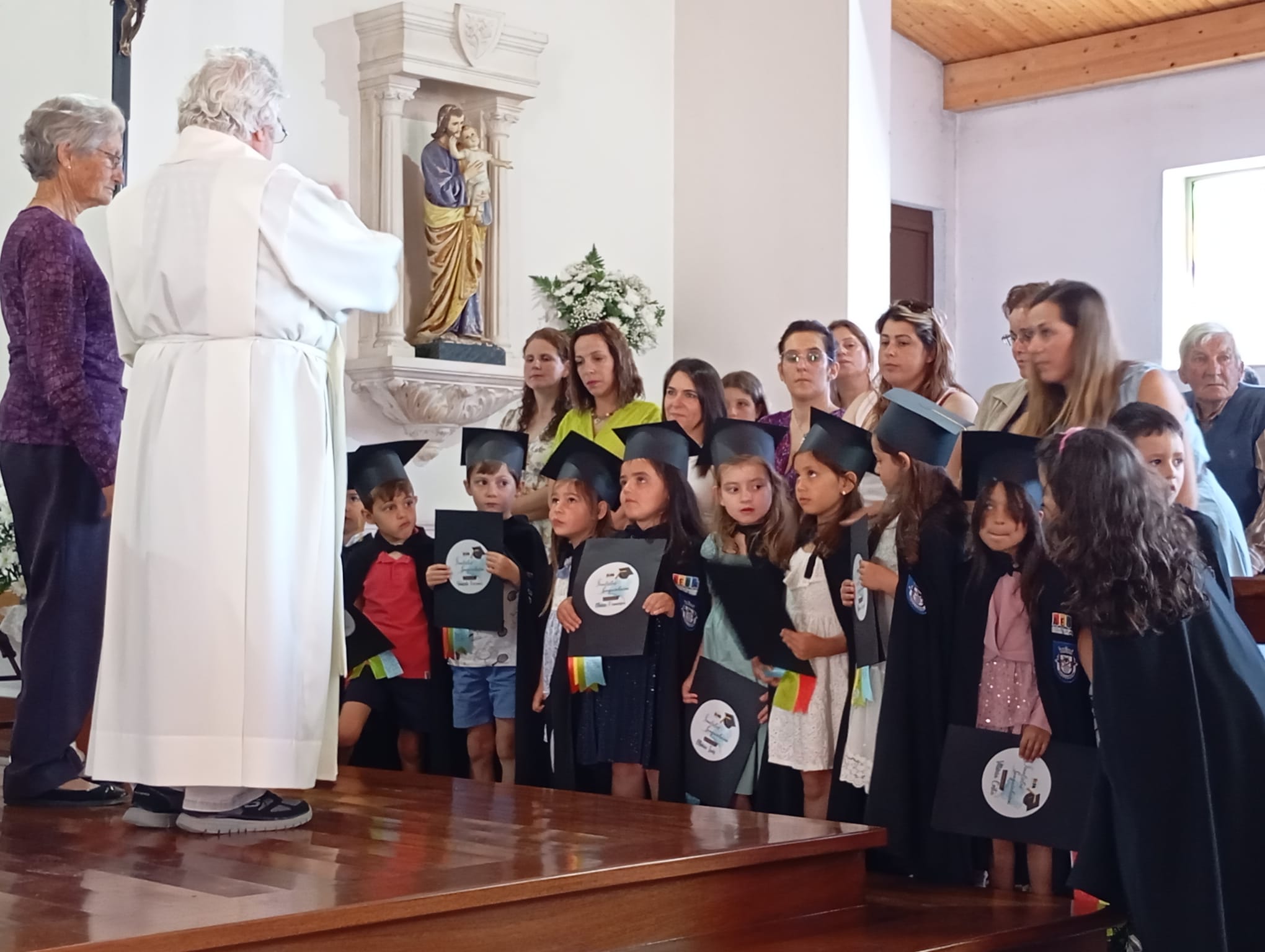 A celebração da Eucaristia Dominical de hoje foi enriquecida pela presença dos finalistas do Jardim de Infância da Sanguinheira e do 4º ano da EB1 Sanguinheira, que receberam a bênção do Sr. Padre Diamantino. A Junta de Freguesia parabeniza e deseja a todos muitas felicidades no seu percurso académico!